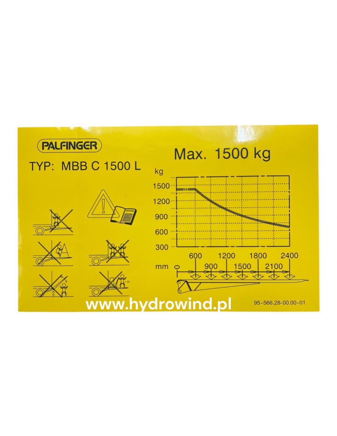 Naklejka z wykresem udźwigu MBB Palfinger C1500L- 1500kg